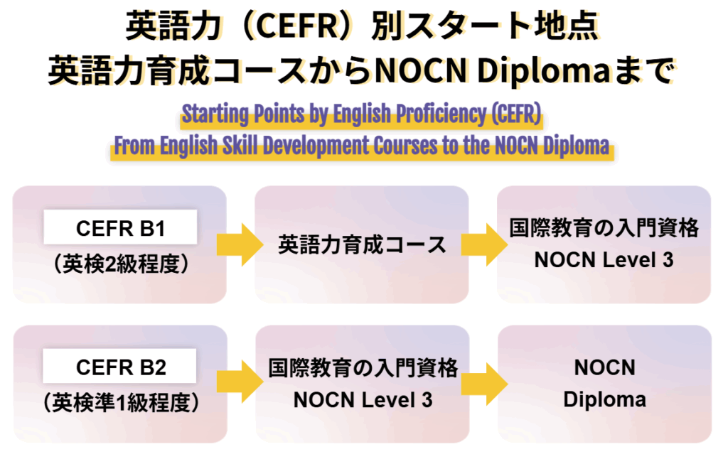 英語力(CEFR)別スタート地点 英語力育成コースからNOCN Diplomaまで