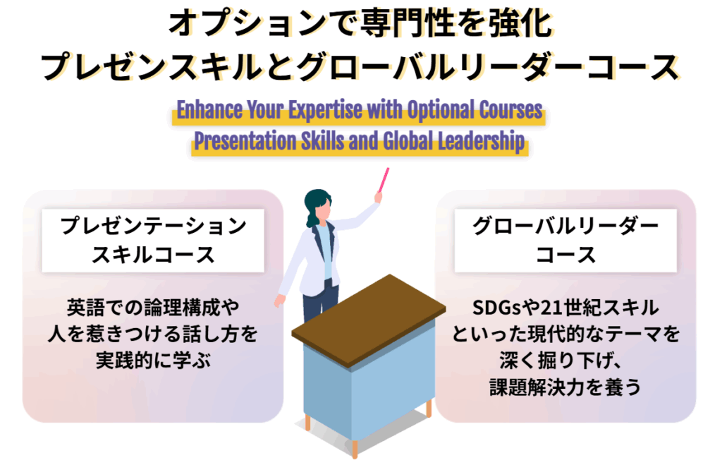 オプションで専門性を強化 プレゼンスキルとグローバルリーダーコース
