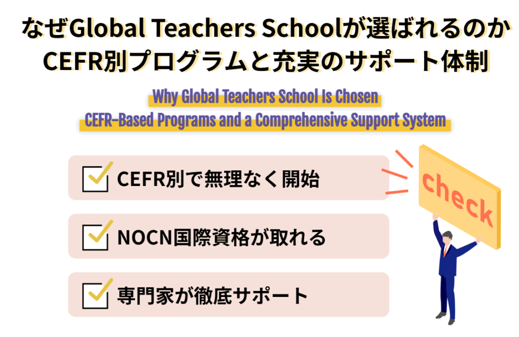 なぜGlobal Teachers Schoolが選ばれるのか CEFR別プログラムと充実のサポート体制