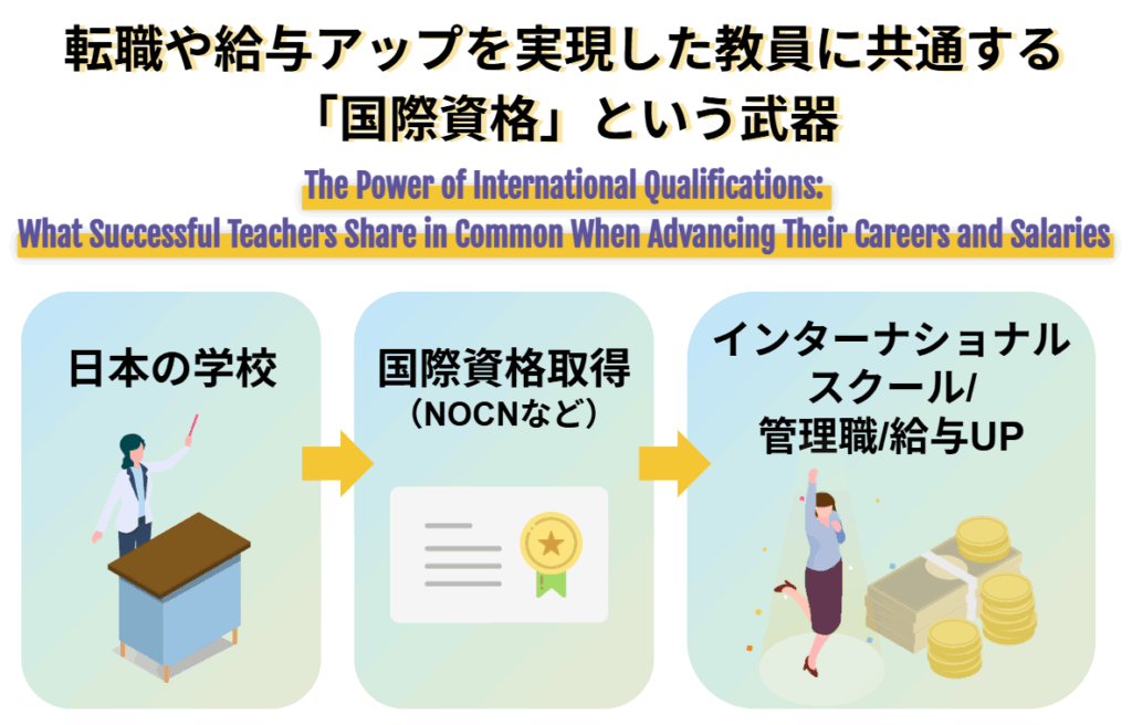 実際に、私の周りでもCELTAやNOCNといった資格を取得した同僚が、希望のインターナショナルスクールに転職したり、校内で国際部門の主任に抜擢され給与がアップしたりする例を見てきました。資格は、あなたの専門性を客観的に証明し、より良い条件でのキャリアチェンジを可能にします。