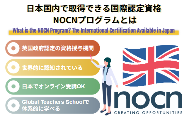 「国際資格に興味はあるけれど、海外に留学するのは難しい」と感じる方も多いでしょう。そんな先生方におすすめなのが、英国政府認定の資格認定機関であるNOCNが提供する教育資格プログラムです。