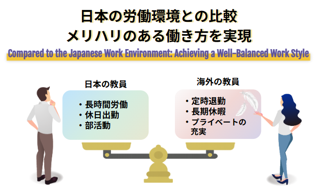 海外の多くの国では、「仕事は契約された時間内で行うもの」という意識が徹底されており、日本の教員が直面しがちな長時間労働や休日出勤は少ない傾向にあります。これは、教員の仕事の範囲が明確に定められているためです。例えば、授業準備や成績評価は勤務時間内に行うのが基本で、放課後の部活動指導なども専門のコーチがいる場合が多いです。